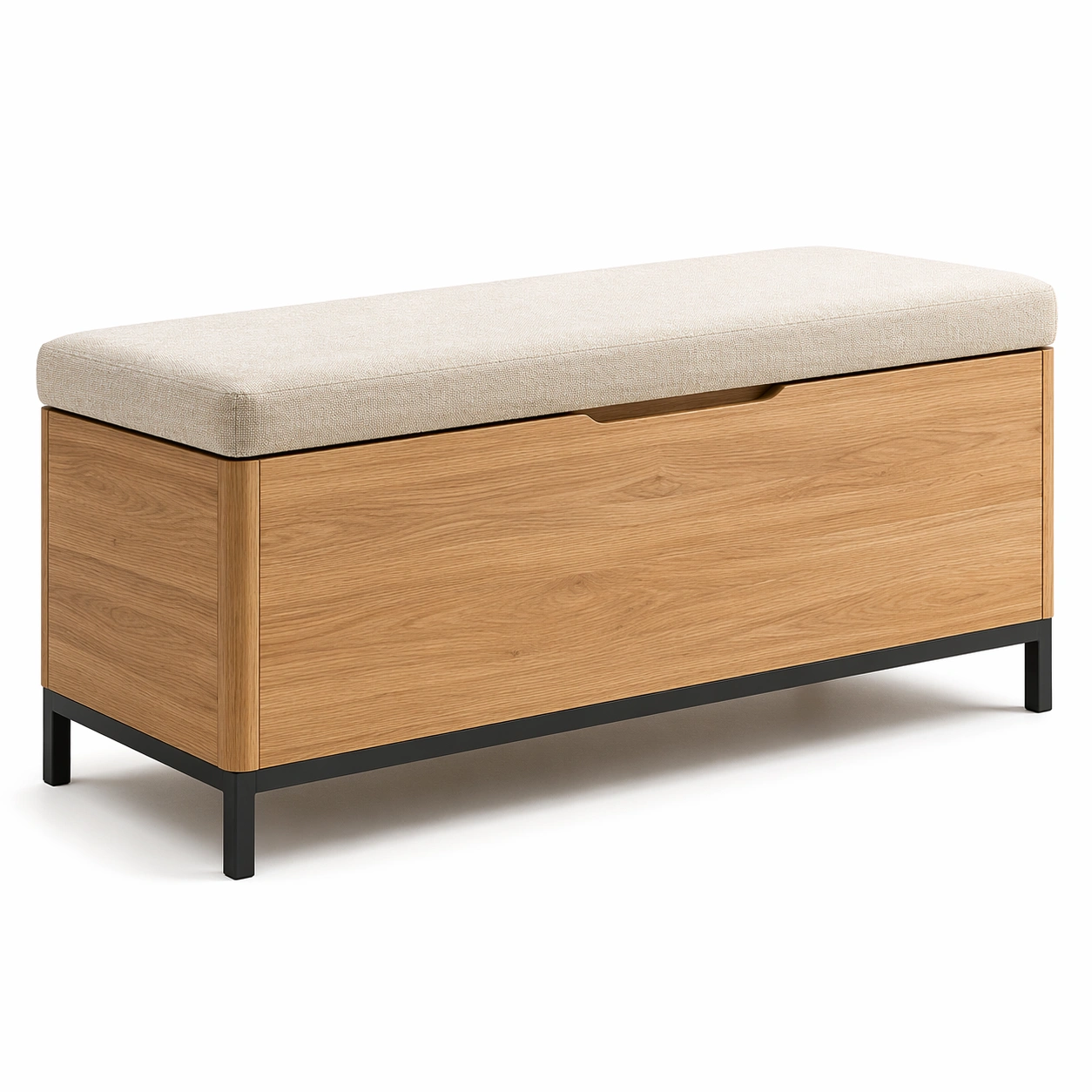 Sitzbank mit Stauraum Eichenfurnier Leinen Beige 120x40x45 cm